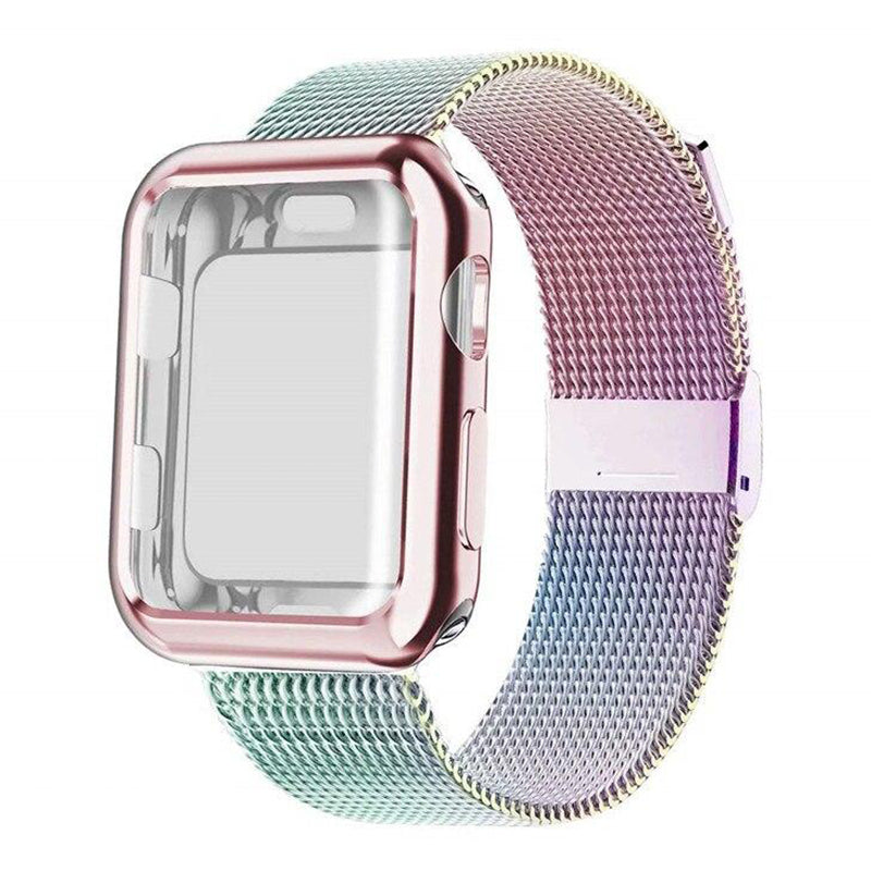 Impress with the Arche Milanese Metal Band + Case for Apple Watch. Our woven stainless steel strap adds unbeatable style, while the fold down clasp ensures a secure fit for everyday wear. The super thin, durable case protects your watch from any damage. Made of 100% stainless steel and featuring compression molding, this band is both lightweight and sturdy. Not only is it fashionable, but also breathable and easy to clean. No tools are needed for installation and it's compatible with Apple Watch Series 1-8 as well as SE and SE2 models. It fits wrist sizes from 130mm to 265mm, making it a versatile and stylish accessory for any occasion.