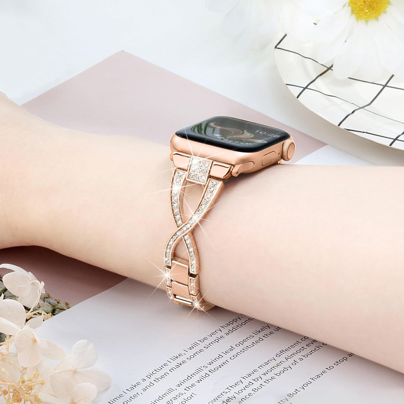 Elevate your style with the Straplab Rose Gold Diamond X-Shape Apple Watch Band. This exquisite band boasts a unique X-shape design adorned with sparkling rhinestones, making it the perfect fashion statement. Crafted from high-quality metal, this lightweight band offers durability without compromising comfort.