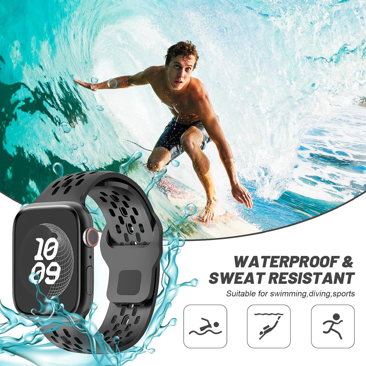 The innovative air hole design enhances breathability, making this band not only waterproof but also sweat-proof—perfect for intense workouts or daily activities. Elevate your Apple Watch experience with the perfect blend of style and functionality.